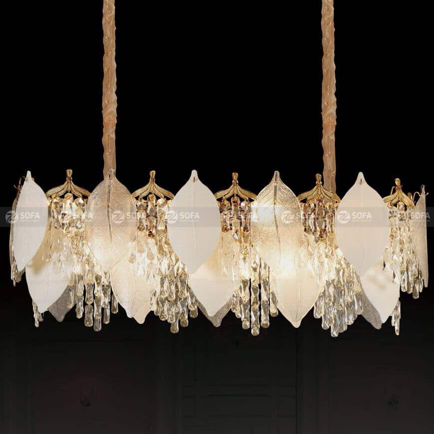 Đèn chùm phòng khách với luồng ánh sáng nó mang đến sẽ là món nội thất giúp kết nối không gian phòng khách với nhau để tạo nên không gian vững chắc.