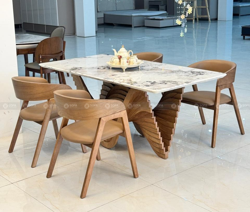 Bàn ăn chân gỗ sồi mặt đá tự nhiên NK Xuất xứ