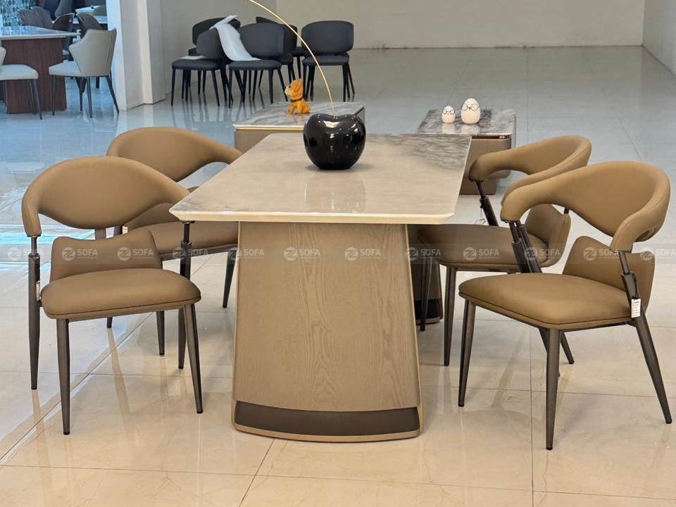 Bàn ăn chân gỗ sồi mặt đá tự nhiên NK Xuất xứ