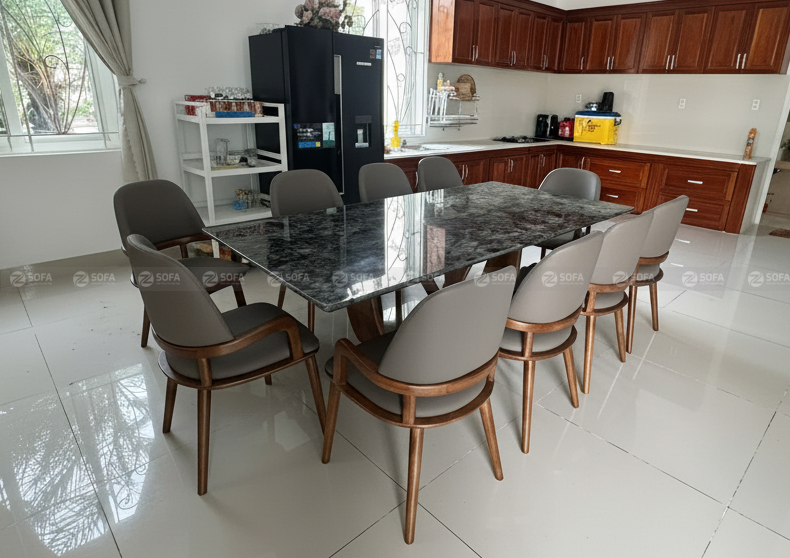 Với kích thước lớn và thiết kế mang tính nghệ thuật cao, bàn TERA-T806 phù hợp với các ngôi nhà phong cách biệt thự, villa, nhà phố cao cấp hoặc căn hộ có không gian rộng. Tính thẩm mỹ và chất lượng hoàn thiện cao của bộ sản phẩm giúp nâng tầm toàn bộ khu vực phòng ăn, tạo nên không khí sang trọng và cuốn hút.