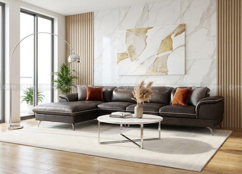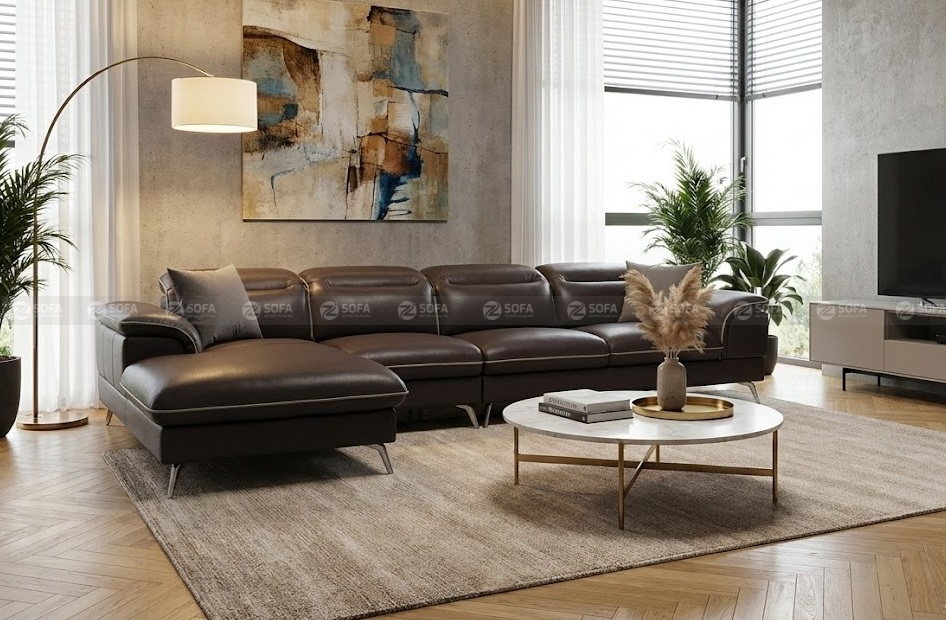 Sofa da bò Ý khung gỗ sồi ZDA372