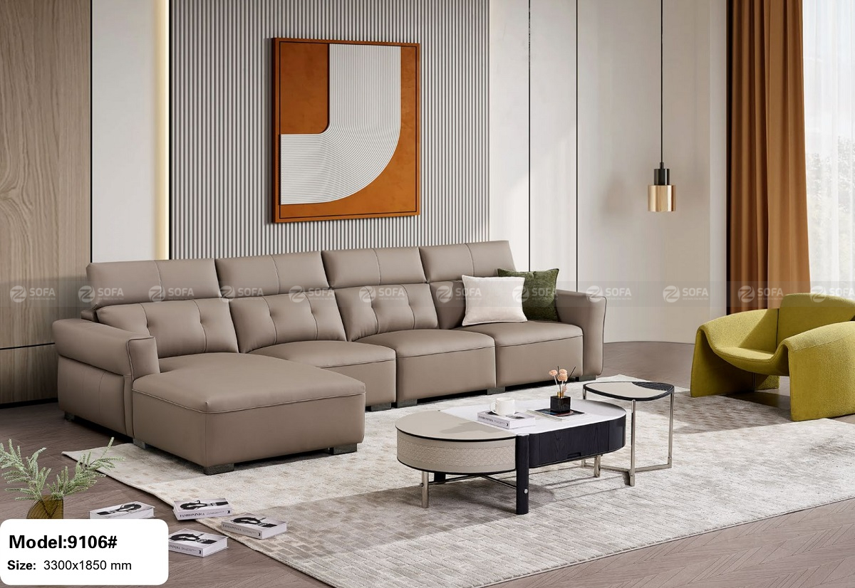 Với kích thước rộng rãi khoảng 3.3m x 1.8m, ZTA342 phù hợp cho phòng khách vừa và lớn, giúp không gian trở nên hiện đại và thanh lịch hơn. Thiết kế chữ L tiện dụng cùng form ghế sâu và bề mặt ngồi phẳng mang đến sự thoải mái cho cả gia đình khi thư giãn, xem phim hoặc tiếp khách. Tông màu trung tính của sản phẩm cũng rất dễ phối với nhiều phong cách nội thất khác nhau.