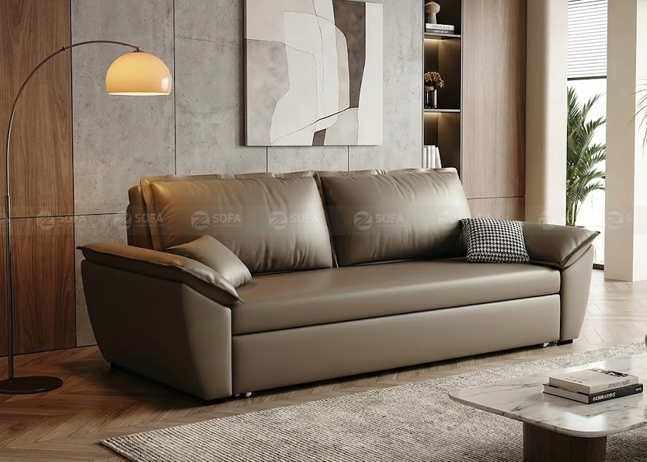 Xuất xứ Việt Nam Thời hạn bảo hành 3 năm ( khung, mút ). Theo chính sách bảo hành của Zsofa Kiểm tra bảo hành online. Trọng lượng 100 kg Sofa giường ZD403 sở hữu thiết kế tay chéo hiện đại, độc đáo, cho phép người dùng có thể nằm gối đầu trực tiếp trên tay ghế một cách thoải mái. Kiểu dáng gọn gàng nhưng tinh tế, đường nét mềm mại giúp sản phẩm dễ dàng hòa hợp với nhiều phong cách nội thất, từ căn hộ chung cư hiện đại đến nhà phố tối giản. Màu sắc sofa tùy chọn theo yêu cầu, đáp ứng đa dạng gu thẩm mỹ của gia đình.